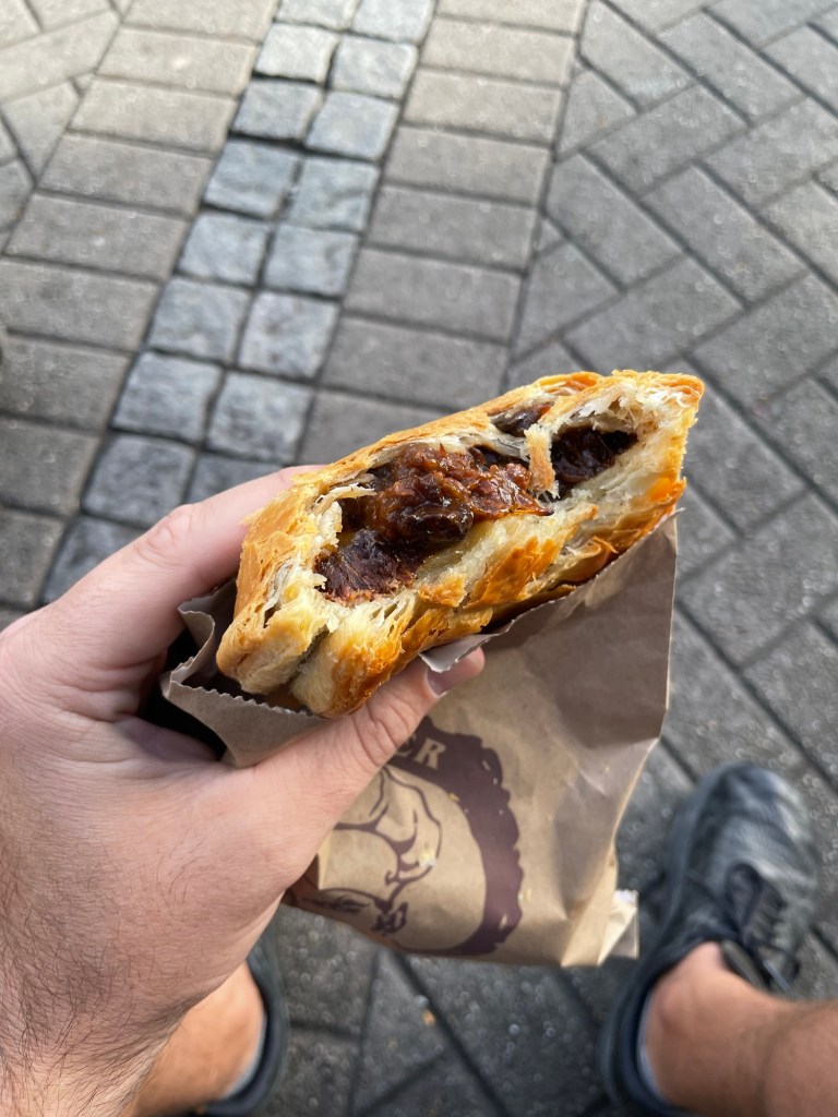 Tip: while waiting in line purchase a meat pie. We got the venison meat pie with carmelized onions instead of the venison burger. It was half the price and delicious.